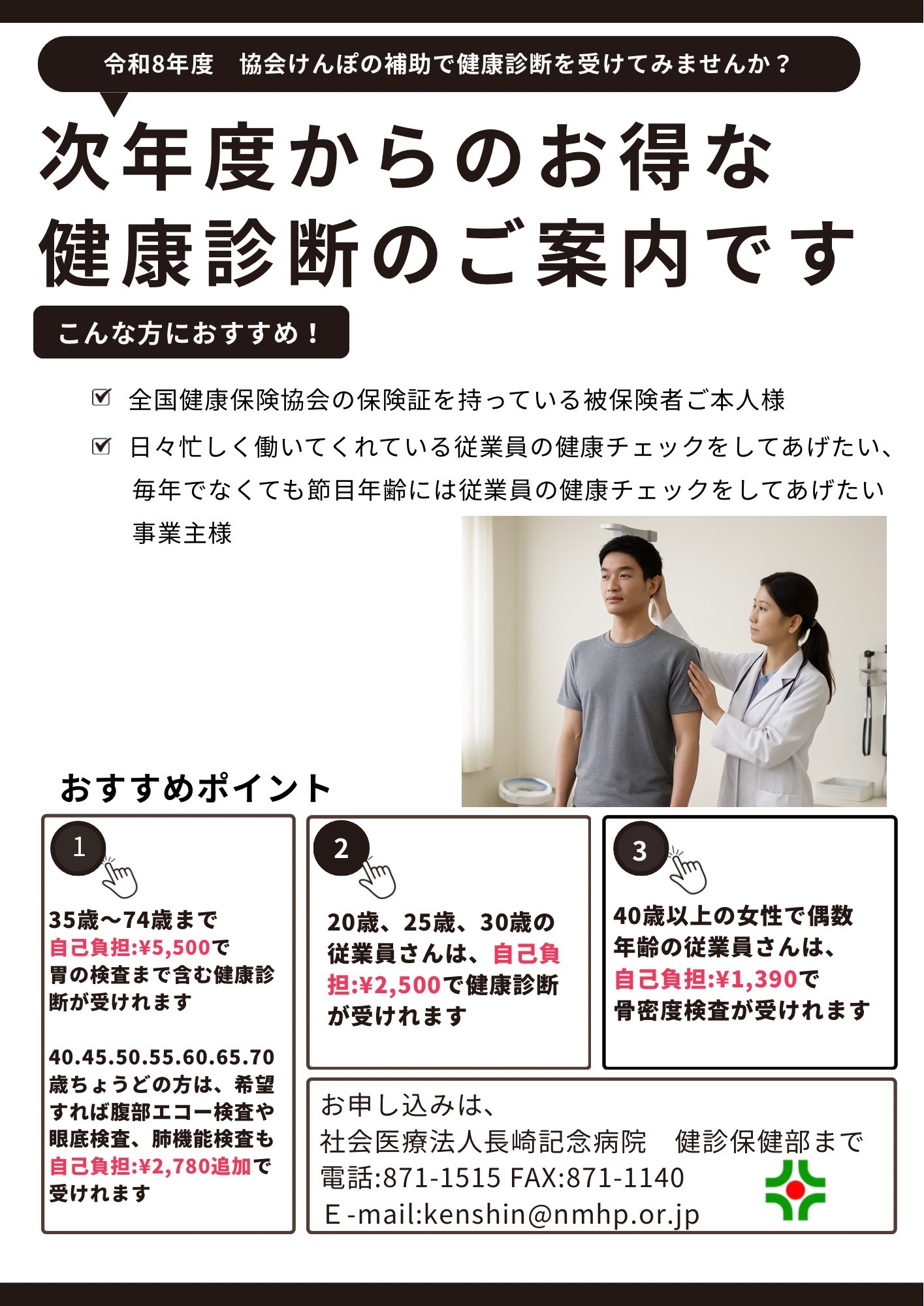 当院では令和8年度協会けんぽ生活習慣病健診の予約受付を